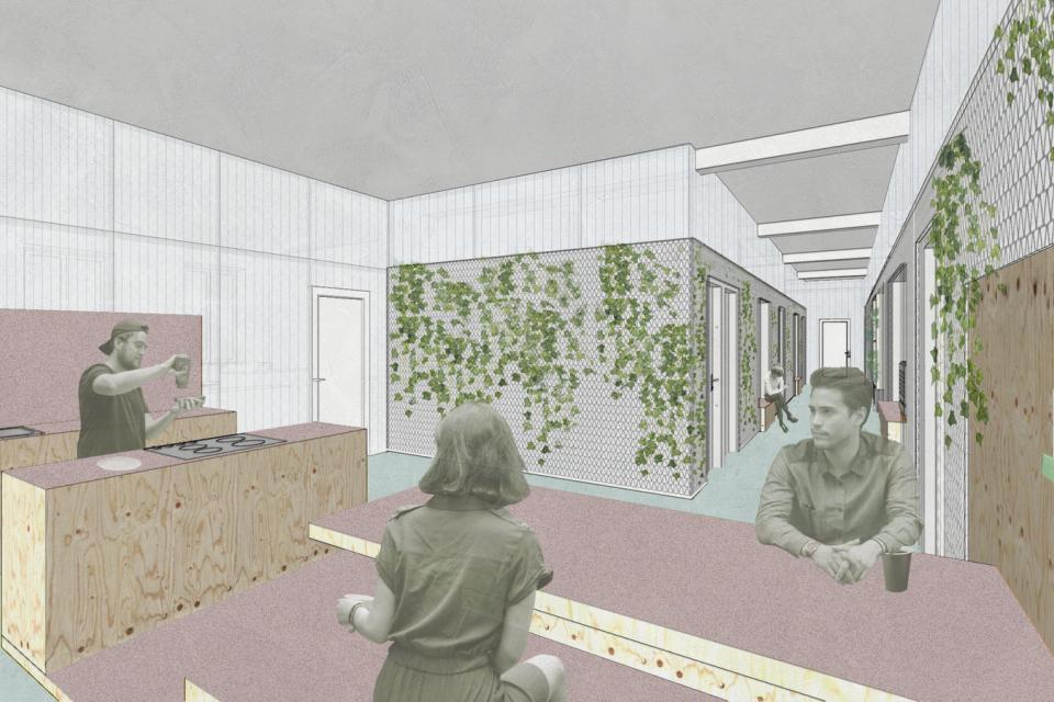 The gatehouse in the north-west sits at the heart of the IT campus and is also the portal to the MINT campus. This is where the new center for existing and future initiatives of the "Alte Schmelz" is being built. In addition to permanent office space for the initiatives, there is a room for workshops and youth work as well as an inviting room as a social contact point. The gatehouse is supplemented by a 100 m² annex.