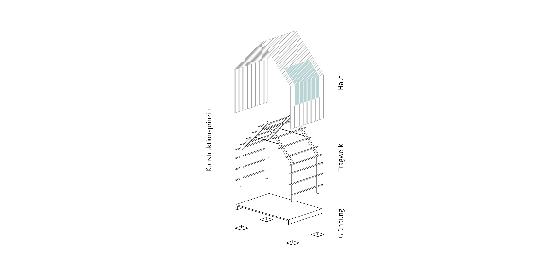 With the fibre cement, a sustainable element was chosen for the outer skin that can easily be weatherproofed and, unlike bituminous waterproofing, can be placed over and over again. Due to the simple basic construction of the segment frames in wood construction and the use of closed and transparent corrugated sheets as building envelopes, a wide variety of room combinations can be safely and easily created and later supplemented. After dismantling, all materials can be separated again into their individual components and reused - an essential criterion in the evaluation system for sustainable construction. For urban gardening projects too, of course.